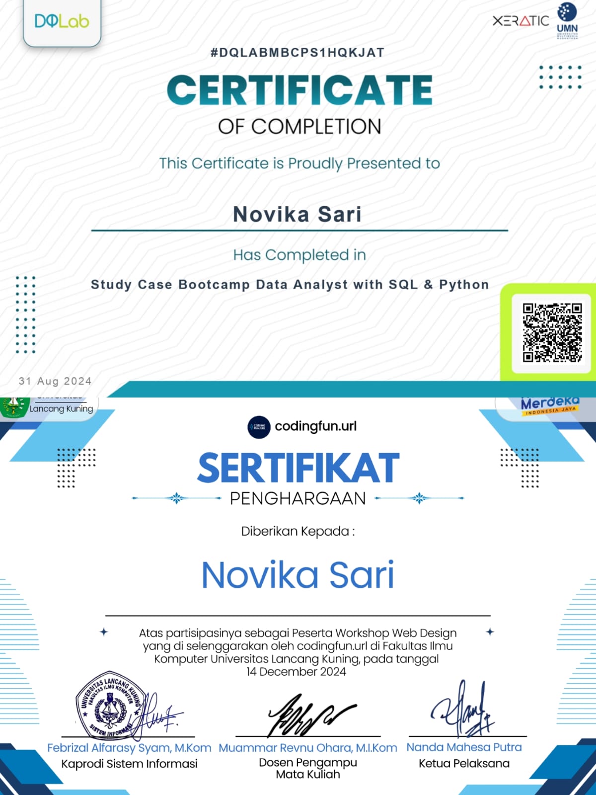 Sebagai mahasiswa Sistem Informasi, saya tidak hanya belajar teori, tapi juga aktif mengasah keterampilan praktis. Ada beberapa proyek/praktik ilmu yang pernah saya kerjakan & ikuti selama 4 semester di bidang Sistem Informasi diantaranya: